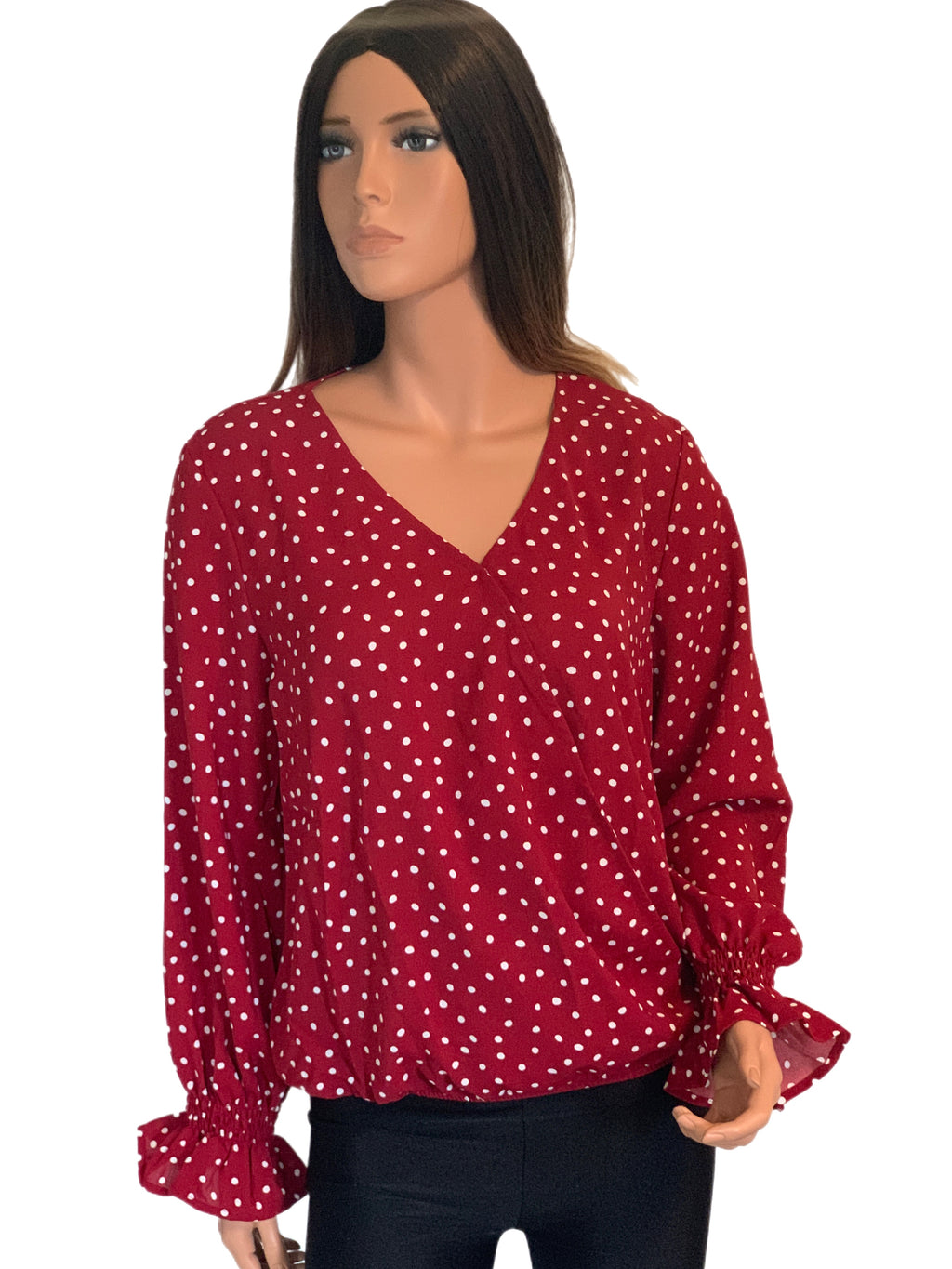 Paprika Polka Dot V-neck Ruffly Sleeve Blouse